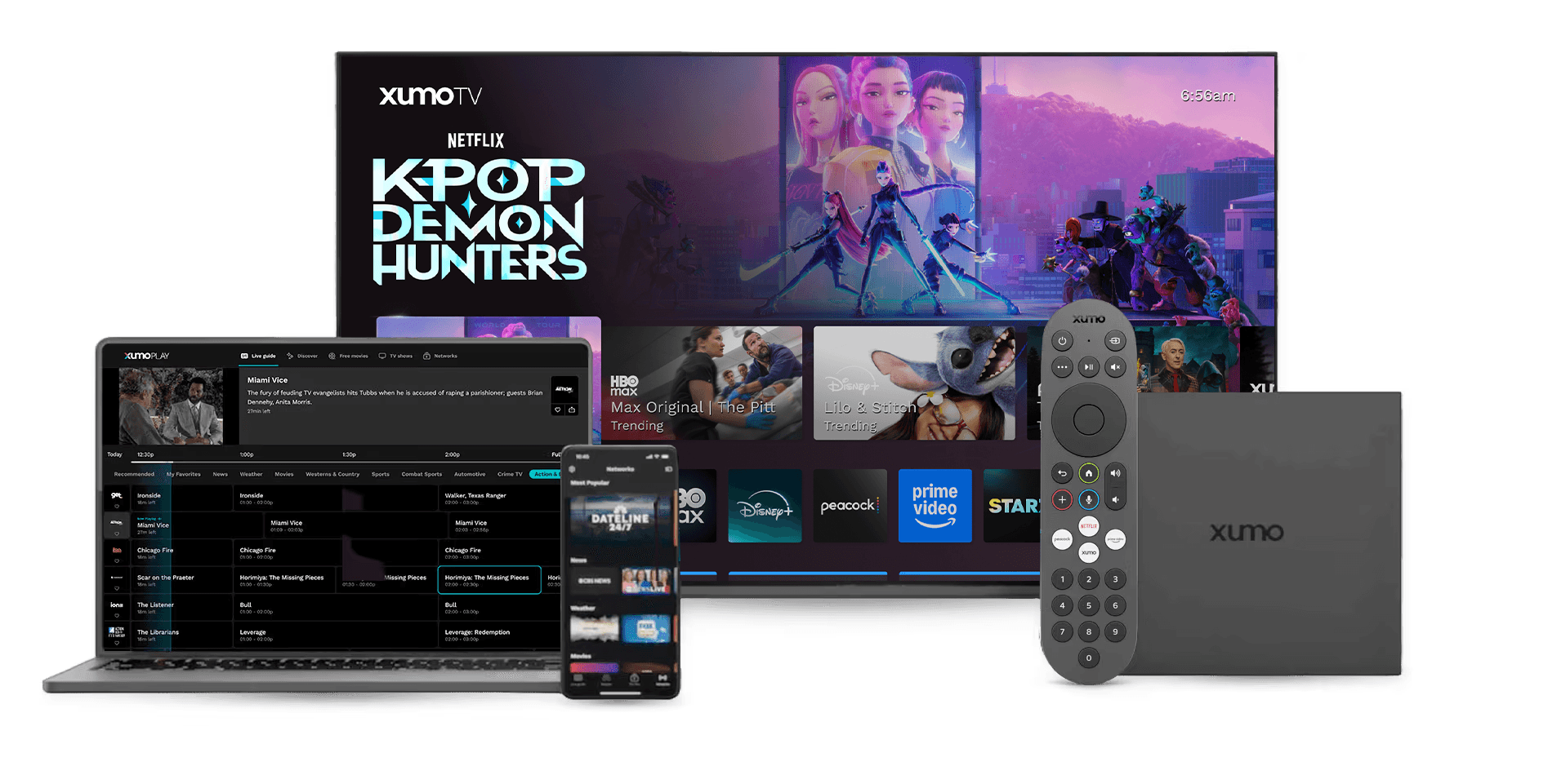 Screen images for illustration. Actual screen may vary. Actual remote may vary. Separate subscriptions are required to view content through various paid applications. Terms apply. Xumo, Xumo Play, Xumo Stream Box, and all other Xumo product names, logos, slogans or marks are the trademarks of Xumo or its licensors. ©2024 Xumo. Services subject to all applicable service terms and conditions, subject to change. Services not available in all areas. Restrictions apply.